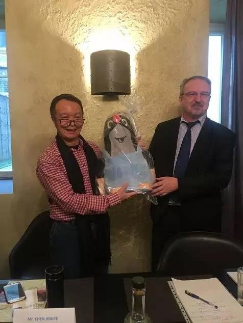 ▲捷方向金立方董事長贈送禮物——捷克國家級卡通形象“小鼴鼠”,寓意中捷友誼長青