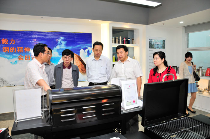廣東省商業(yè)企業(yè)集團(tuán)公司領(lǐng)導(dǎo)首先參觀不銹鋼制品展廳,觀看中德金屬生態(tài)城宣傳片,隨后召開座談會(huì)。揭陽市金屬企業(yè)聯(lián)合會(huì)會(huì)長吳克東會(huì)上簡要介紹了中德金屬生態(tài)城項(xiàng)目的基本情況,隨后雙方就金屬產(chǎn)業(yè)物資平臺(tái)打造、技術(shù)人才引進(jìn)、自主品牌研發(fā)等內(nèi)容展開深入討論。