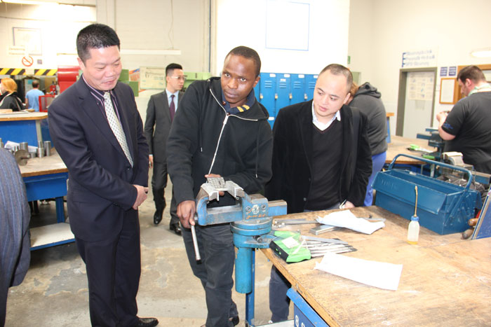 代表團在沙爾平先生的介紹下,深入考察了德國的職業(yè)教育體系,先后參觀了黑森-圖林根大區(qū)工會下屬的職業(yè)技術(shù)學校海因里希-克萊因爾學校,實地參觀了德國職業(yè)技術(shù)學校教學現(xiàn)場。德國學生經(jīng)過培訓后達到的高超技藝,給代表團留下了深刻印象,并立即與相關(guān)部門達成了職業(yè)教育培訓合作意向,為揭陽創(chuàng)辦產(chǎn)業(yè)技術(shù)應(yīng)用大學積累了寶貴的合作資源。