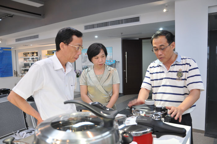 向李惠武副主任講解金屬制品專利工藝