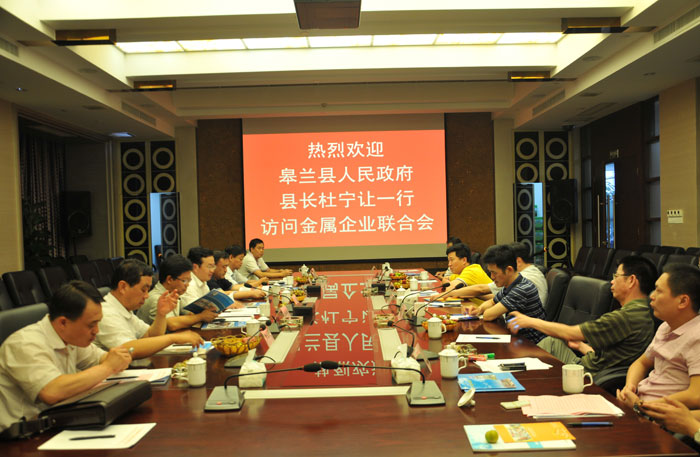 在陳東市長攜揭陽代表團赴甘肅皋蘭縣調研并簽訂合作意向書一周之后,2013年7月15日,皋蘭縣縣長杜寧讓一行在市政協副主席陳定雄、市政府副秘書長林興國等的陪同下參觀考察了揭陽市金屬企業(yè)聯合會。揭陽市金屬企業(yè)聯合會會長吳克東、執(zhí)行會長林眾偉陪同參觀。