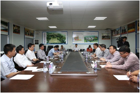 鄭通聲一行與陳澄民等揭陽(yáng)市領(lǐng)導(dǎo)在金屬生態(tài)城建設(shè)指揮部座談