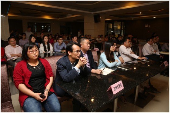 參加會議的全體員工認真聽講