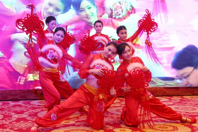 隨后,開場民族歌舞《好運(yùn)來》火熱開幕,把現(xiàn)場氣氛點(diǎn)綴得熱鬧、溫馨。精心編排的古箏合奏、三句半、歌舞、魔術(shù)等節(jié)目輪番上演,形式各異,贏得在場陣陣掌聲。其中,小品《五大中心賣瘋了》將中德金屬生態(tài)城的首期核心項(xiàng)目融入到小品當(dāng)中,燃起了全場的高潮,讓觀眾在爆笑之余對公司項(xiàng)目有了更深的印象。觀賞之余,在座的外賓按耐不住內(nèi)心的歡樂,登臺(tái)參與游戲環(huán)節(jié)。中西合璧的團(tuán)隊(duì)競賽,兩種文化的完美交融,讓這次年會(huì)別有一番意義。