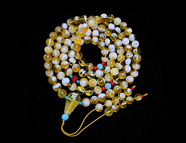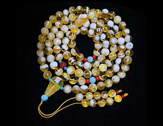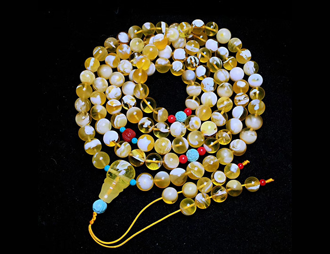 8+mm,俄料金白108佛珠,顆顆精品,金瓷白妖花漂亮,上身超漂亮,44.33g