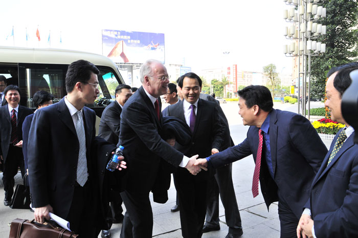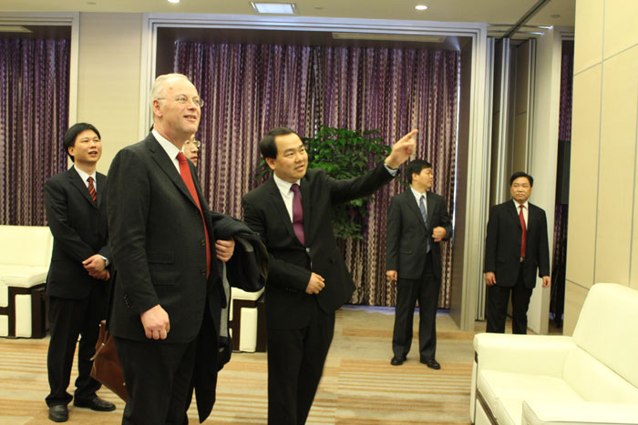 2月24日,中聯(lián)部副部長李進(jìn)軍和德國社會(huì)民主黨前主席魯?shù)婪颉ど碃柶?/A>先生一行蒞臨揭陽金屬企業(yè)聯(lián)合會(huì),揭陽市市長陳東、揭陽市金屬企業(yè)聯(lián)合會(huì)會(huì)長吳克東陪同參觀。