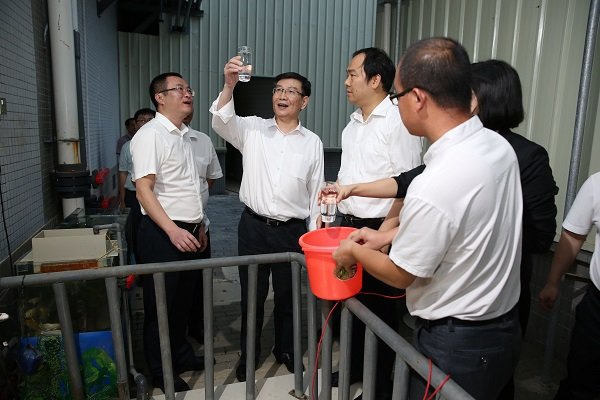 黃副省長一行深入廣東德森環(huán)?萍加邢薰緩S房,考察德森移動(dòng)式智能生活污水處理設(shè)備項(xiàng)目,聽取負(fù)責(zé)人介紹相關(guān)設(shè)備及技術(shù)后,鼓勵(lì)德森環(huán)保加大環(huán)保技術(shù)科研創(chuàng)新,為中國環(huán)保事業(yè)做一份貢獻(xiàn)!