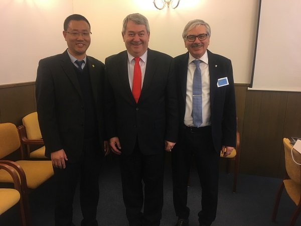 中國(guó)中心負(fù)責(zé)人楊志新與捷克眾議院副議長(zhǎng)菲利普及捷克工業(yè)交通聯(lián)合會(huì)副會(huì)長(zhǎng)查洛佩斯基合影