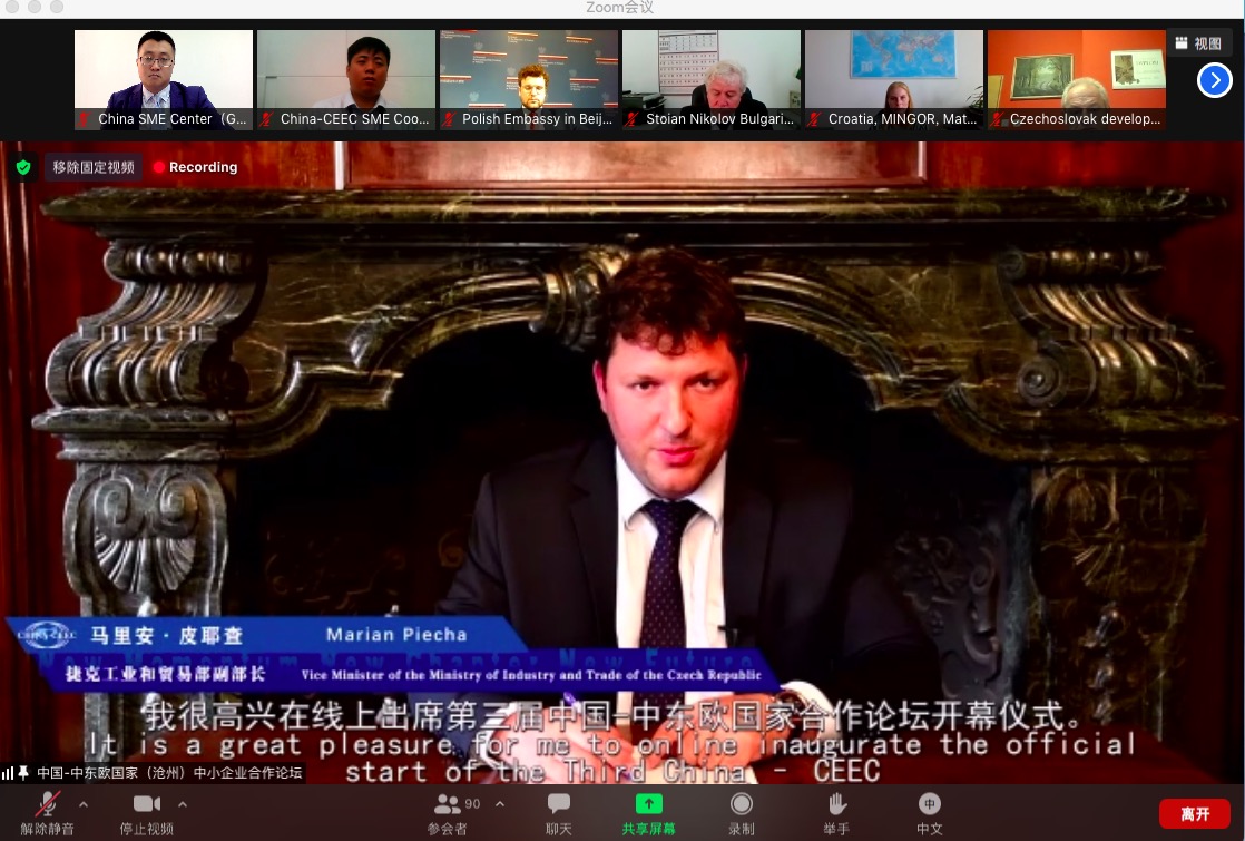 △捷克工貿(mào)部副部長(zhǎng)在致辭中提及中德金屬集團(tuán),中國(guó)中小企業(yè)中心及其駐捷辦事處在促進(jìn)中東歐合作方面取得的工作成效