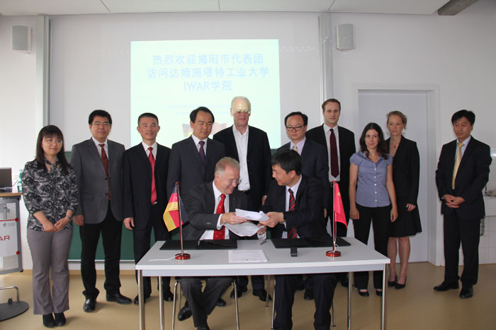 揭陽市金屬企業(yè)聯(lián)合會吳克東會長與IWAR研究所瓦格納教授簽訂園區(qū)污水處理合作協(xié)議