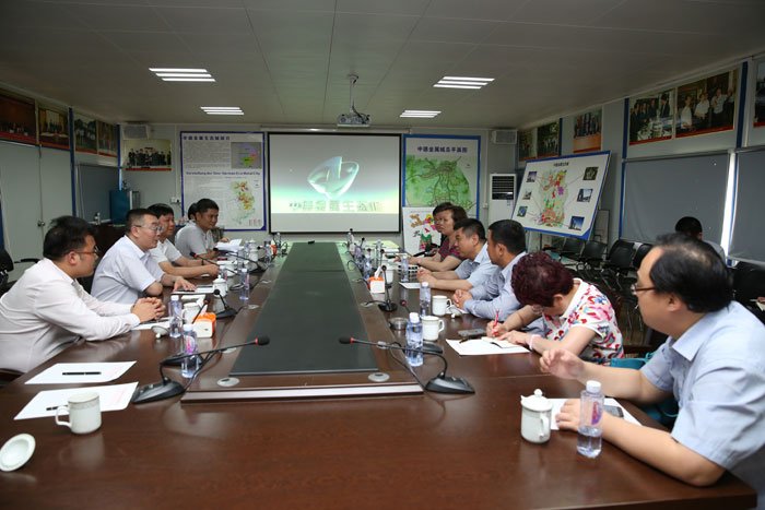 張經(jīng)華一行與李健、中德金屬集團(tuán)相關(guān)領(lǐng)導(dǎo)在金屬生態(tài)城建設(shè)指揮部座談