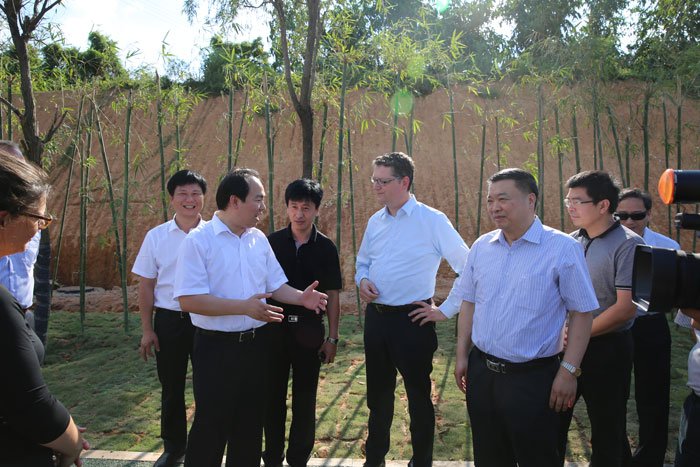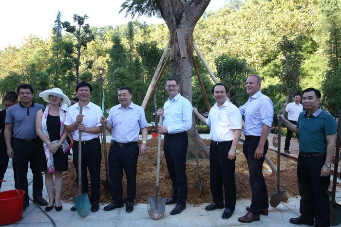 當(dāng)天下午,出席對話會的中德領(lǐng)導(dǎo)嘉賓還前往中德金屬生態(tài)城參觀考察,并出席中德金屬生態(tài)城萬畝森林公園開園儀式,共同種下象征中德友誼的鳳凰樹。