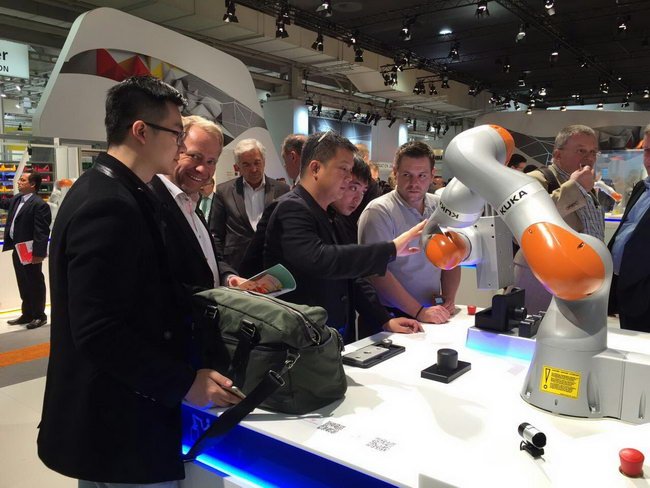 KUKA 公司設計的自主移動機器人,既可作為工業(yè)生產(chǎn)助手,也可作為家務助手,成為考察團的一大看點