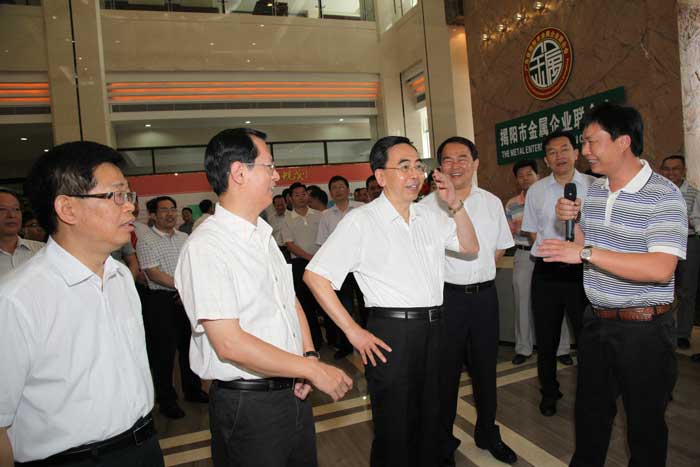 陳東市長簡要的介紹了揭陽市近年來金屬產(chǎn)業(yè)發(fā)展和金屬產(chǎn)業(yè)轉(zhuǎn)型升級的概況,吳克東會(huì)長詳細(xì)介紹揭陽金屬城建設(shè)、規(guī)劃、開發(fā)的情況,隨后朱小丹省長觀看了《產(chǎn)業(yè)復(fù)興,輝煌崛起——揭陽金屬產(chǎn)業(yè)20年巡禮》宣傳片,他對揭陽金屬產(chǎn)業(yè)自主創(chuàng)新模式給予充分肯定,希望揭陽繼續(xù)發(fā)揮金屬產(chǎn)業(yè)集群的優(yōu)勢,不斷提升自主創(chuàng)新,打響自主品牌,培養(yǎng)龍頭企業(yè),為加快產(chǎn)業(yè)轉(zhuǎn)型升級,建設(shè)幸福廣東作出新貢獻(xiàn)。