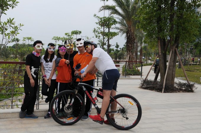 抵達中德金屬生態(tài)城后,騎友們在形成“一河兩岸”生態(tài)風(fēng)景的雕塑公園參觀游賞。隨后,大家前往萬畝森林公園,開始萬圣節(jié)主題活動。作為活動的壓軸大戲,“撕名牌”游戲?qū)F(xiàn)場的氣氛推向了高潮。一時間,整個森林公園歡樂爆棚,倍增了生機與活力。